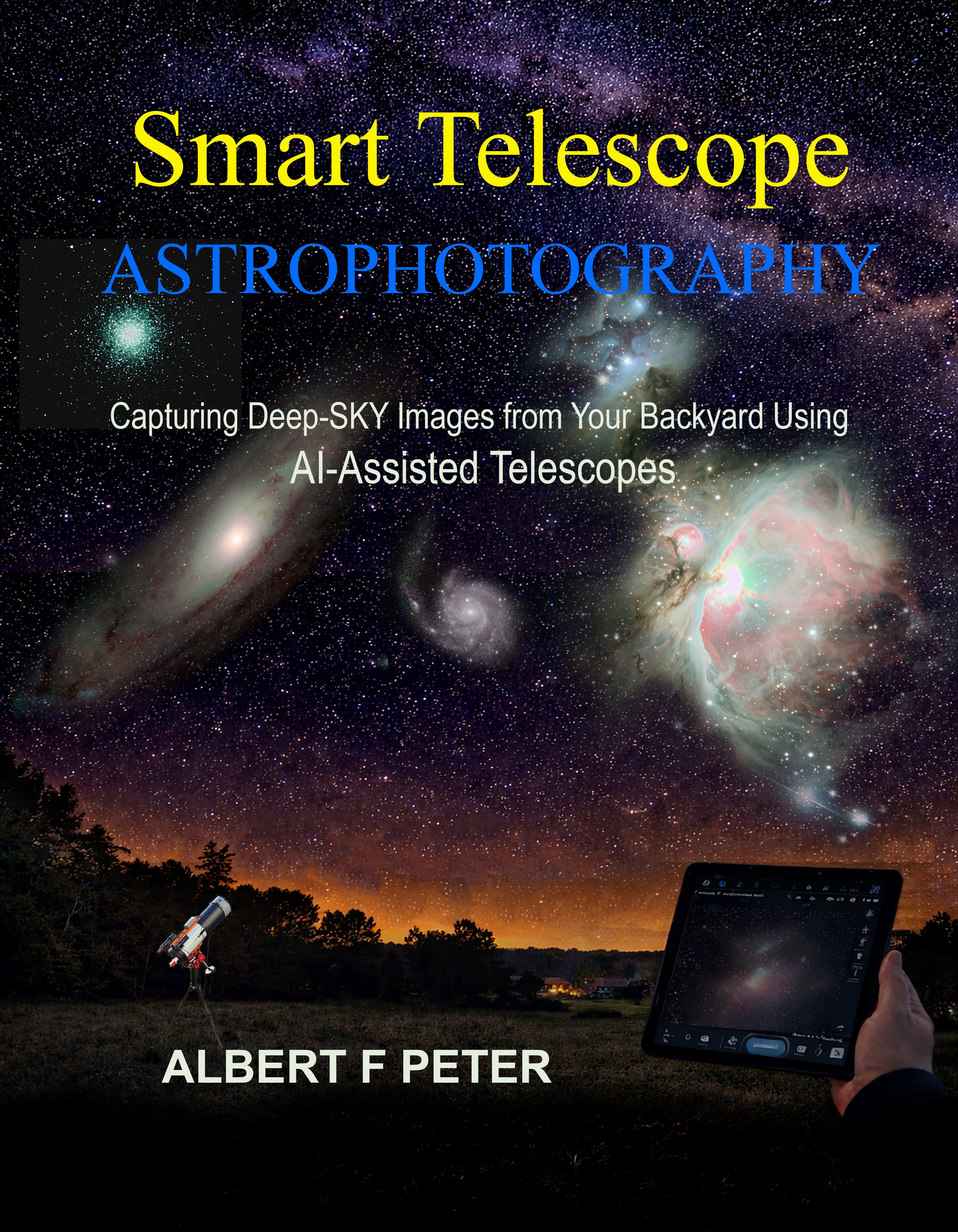 New Book Posted on April 12, 2026April 12, 2026 by alpeter371 Just published: Smart Telescope Astrophotography by Al Peter Available on Amazon. Link: Smart Telescope Astrophotography: Capturing Deep-Sky Images from Your Backyard Using AI-Assisted Telescopes: Peter, Albert F: 9798254017165: Amazon.com: Books Share this: Share on X (Opens in new window) X Share on Facebook (Opens in new window) Facebook Like Loading... Related