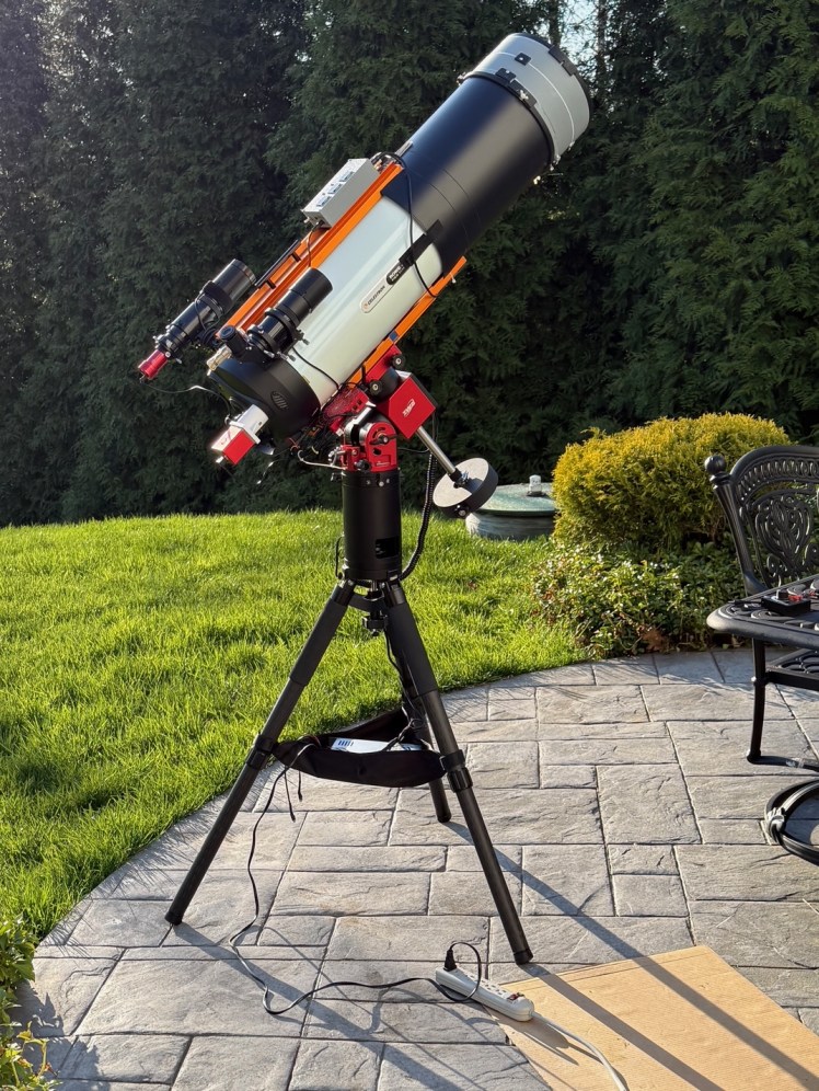 Apertura’s CarbonStar imaging optical design is a 6″ Ritchey-Chretien (RC) folder reflector. The 6″ f/9 optics of this scope provide a native 1377mm focal length window into space that does not require the correction of other compound reflector designs, The RC mechanical design is a blend of sturdy steel, weight-saving but rigid carbon fiber, including top and bottom Vixen-style dovetails for accessory and scope mounting. The optional 0.67 focal reducer yields a flat field, 989mm FL @ F/5.