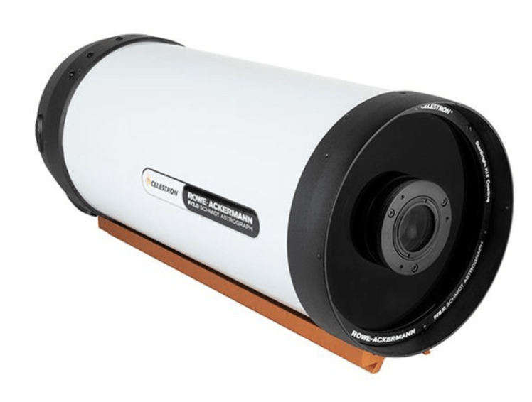 This Rowe-Ackermann Schmidt Astrograph (RASA) 8″ f/2, FL 400 mm is great for capturing large portions of the night sky in a single frame. For astrophotography only, the optical elements within this RASA 8 provide an inherent flat field, razor sharp stars, and photos absent of aberration. Celestron has also furnished their RASA series with mechanisms such as a smooth internal focuser and an integrated telescope cooling system.