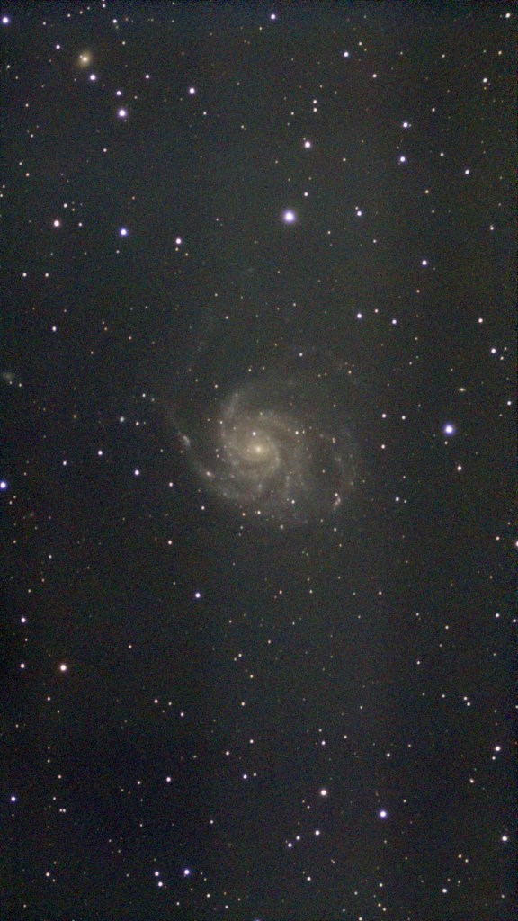 Once the EQ system was complete some longer exposure images were acquired. The next available semi-clear night was with an 80% full moon, so conditions were less than ideal. Not withstanding that, I got some reasonably decent results, as shown by the M101 processed image.