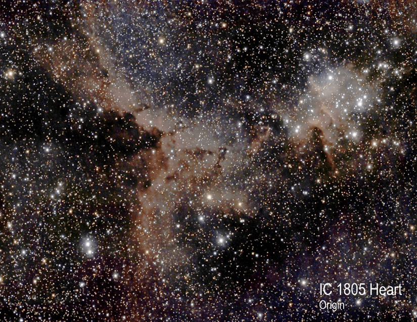 An example from Origin in the EQ mode follows, which is the Heart Nebula (IC1805). The Heart Nebula was exposed for 180 minutes, at 30 seconds for each subframe.